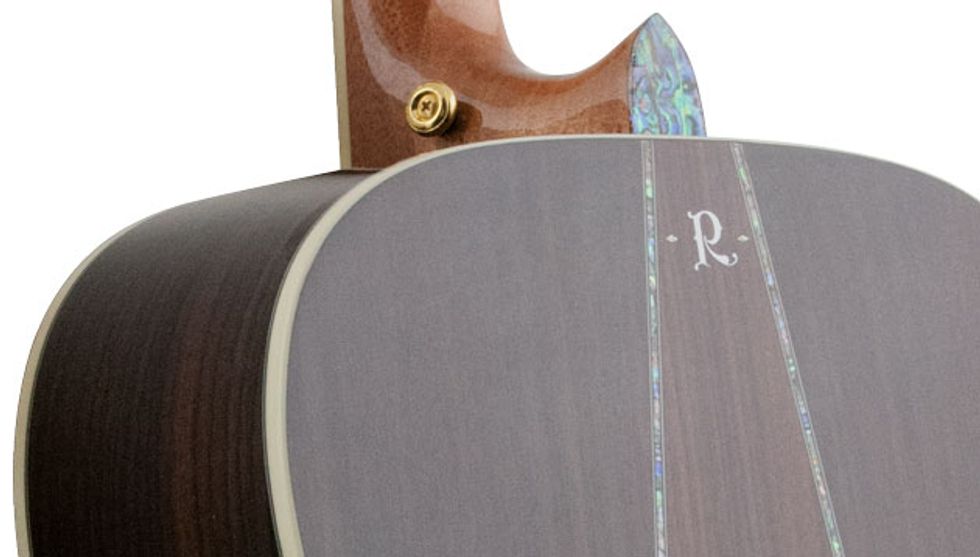 The BCR6 is inspired by the very first acoustic Rico designed. It’s a square-shoulder dreadnought with a 25.5"-scale and a solid spruce top with modern scalloped X bracing. The back and sides are laminated rosewood, and the neck is mahogany with a rosewood fretboard. The bridge and headstock cap are rosewood as well. All the lumber on our test model looks lovingly selected. The spruce is fine-grained, and the quarter-sawn rosewood’s deep, purplish coloration adds character and a luxurious look.