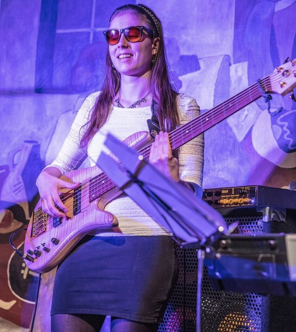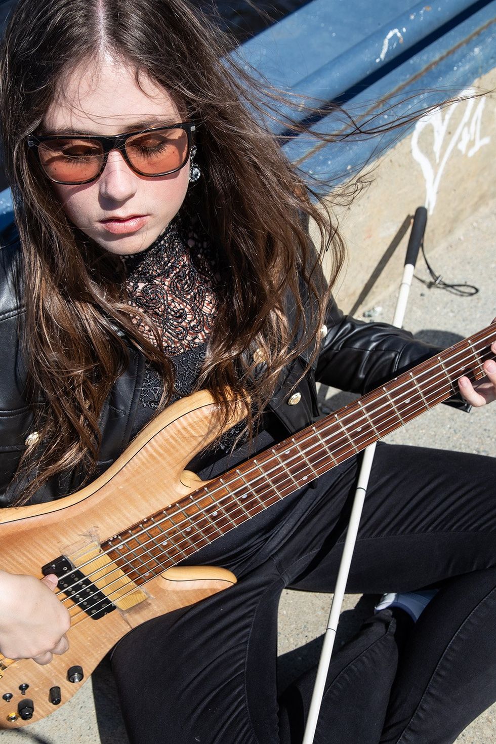 In her early teens, Moser played in a pop-rock band with her two brothers— her younger one is also blind—and two other friends. “It was called Blind Brats,” she laughs. Her first bass was a “super cheap” Ibanez, and an instructor would come to the family home to give her lessons.