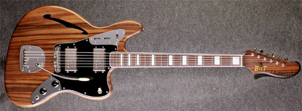Des Moines, IA (January 4, 2012) – Burnishing their reputation for vintagey, mashed-up, slightly incomprehensible guitars, the guys at BilT have created two new models, this time with far fewer knobs.