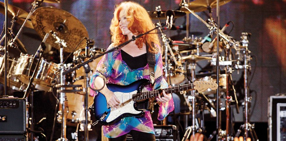 Bonnie Raitt bought her famous “Brownie” Strat for $120 in 1969 and has played it at every gig since. Photo by Buzz Person