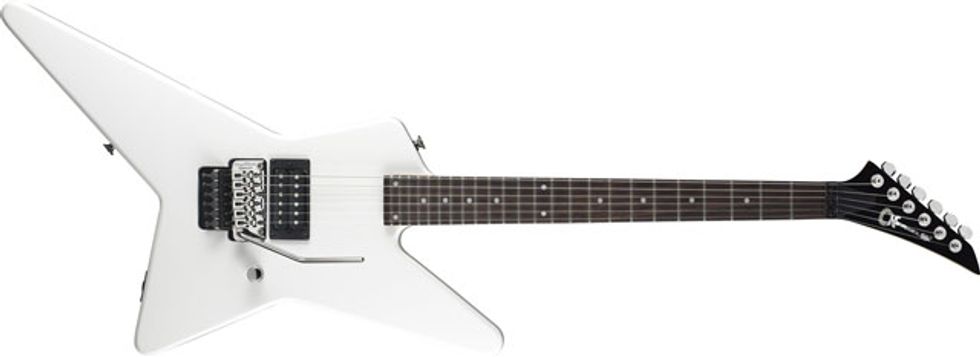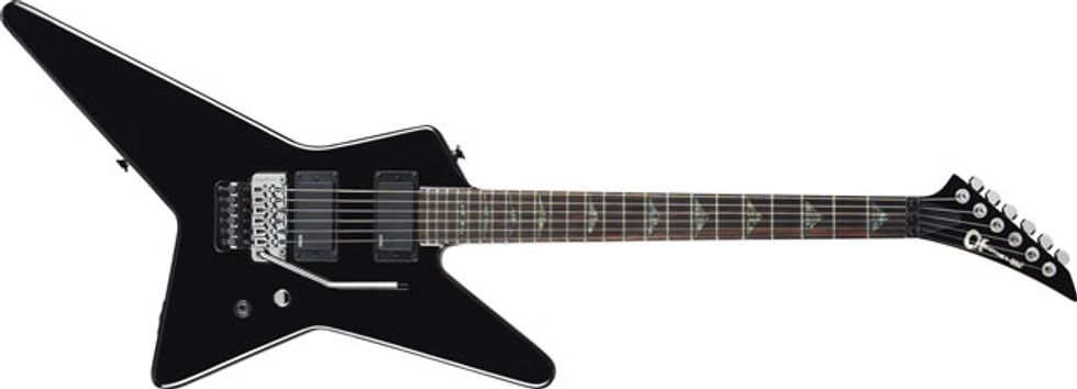 The DST-1 ST Star marks the return of Charvel's classic Star body profile, with features including a neck-through body, maple neck, compound radius (12"-16") rosewood fingerboard with 24 jumbo frets and Charvel "shark tooth" inlays, EMG 85 neck, and 81 bridge humbucking pickups with black bezels and three-way toggle switching, single domed metal volume control knob, stop-tailpiece bridge, locking tuners and black nickel hardware. Available in Black and Snow White gloss finishes with matching headstock; flame maple-top models also available with multi-ply binding (body, neck and headstock) in Trans Red, Trans Black and Trans Blue Smear gloss finishes with matching headstock. The tremolo-equipped DST-1 FR Star shares all the same formidable features and finish options, with the sole exceptions of having a Floyd Rose locking tremolo and sealed die-cast tuners.