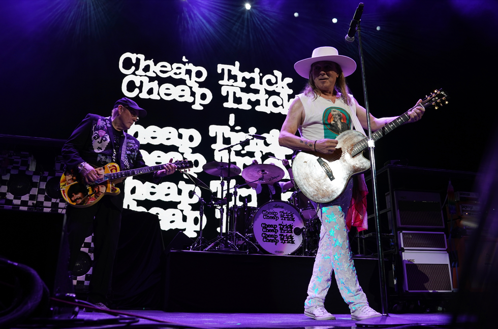 Petersson performs with Cheap Trick at the Songs4Soldiers benefit concert at Bolm-Schuhkraft Park in Columbia, Illinois, on September 16, 2023.