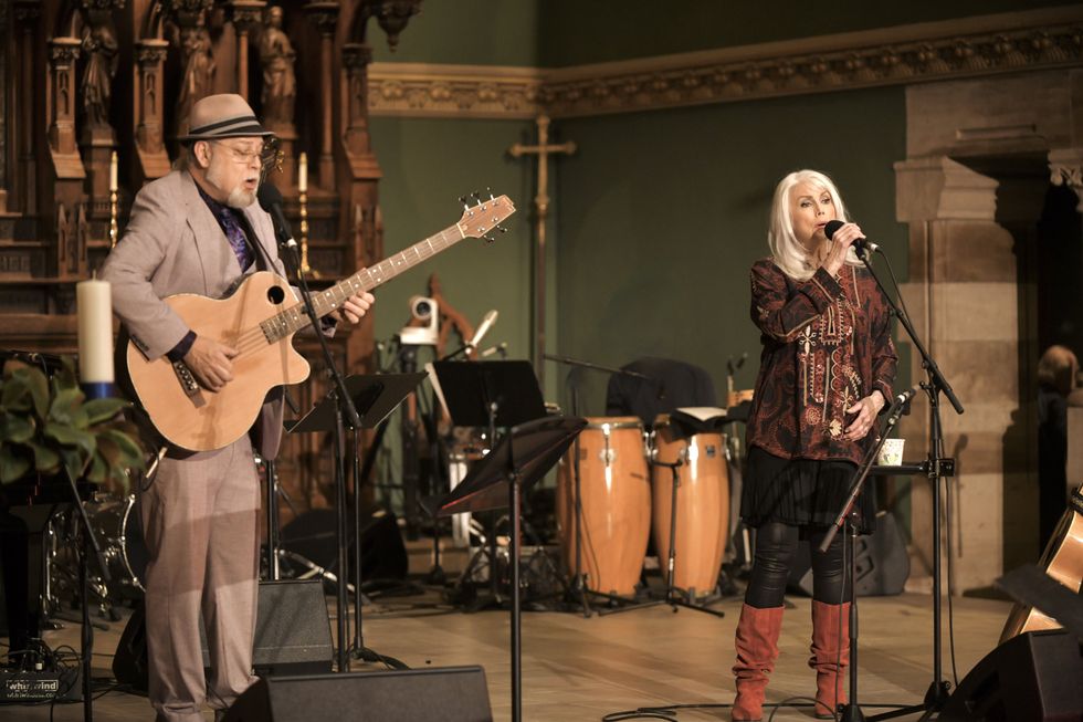Over his 46 years in Nashville, Pomeroy has worked with the biggest stars of country and folk music. Emmylou Harris, performing with Pomeroy here in December 2023, brought him along to her sessions with the Chieftains in 1992.