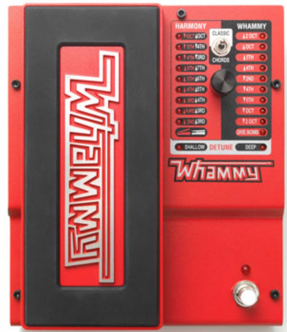 The Whammy lets guitar and bass players raise and lower their tuning by up to two octaves, to create pitch shifts from subtle to extreme and dramatic musical effects not possible with any other pedal. The Whammy now incorporates new pitch-shifting technologies that enable the player to bend entire chords up or down while keeping all the notes in the chord perfectly in tune. The Whammy also keeps its signature Classic single-note mode that has made the pedal one of the most recognizable in rock and contemporary music, along with nine Harmony 2-note interval settings and two Detune modes.