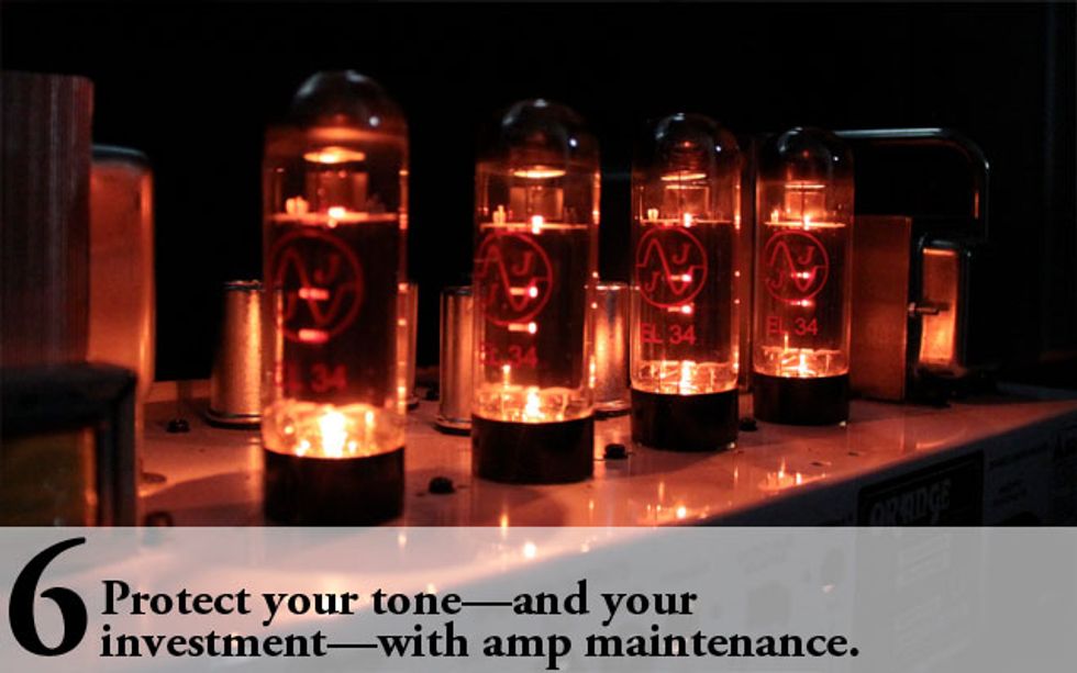 Trejo: I like to make sure all my inputs on my amps are clean with some DeoxIT gold contact cleaner. I also like to do a simple tap test on tubes to make sure they aren’t faulty—take a pencil and have your amp fired up and idling in Standby. Tap your tubes one-by-one. If you don’t hear it coming through the speakers then it’s good to go. Plus, preamp tubes are usually the culprit if you're having tube-related issues.