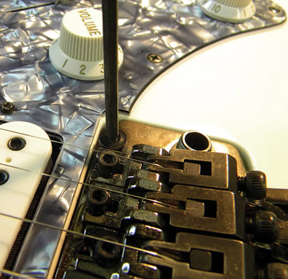 - Retune the guitar and inspect the tremolo to determine if it needs more adjustment. Expect to turn the claw screws and retune repeatedly before you level the bridge base.