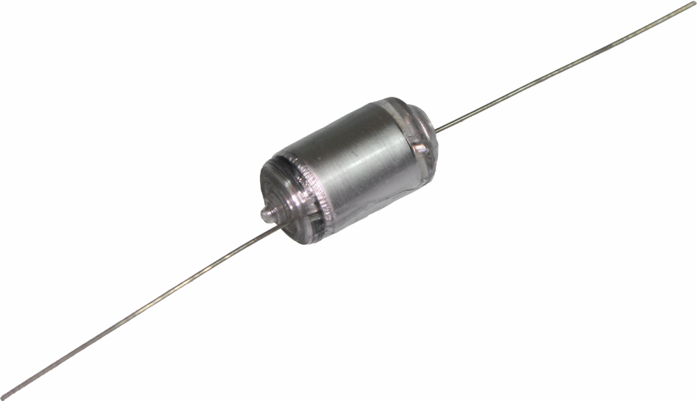 Styroflex caps are easy to identify because of their tubular shape and transparent housing. These caps are typical caps from the fifties and you can find them inside almost every radio and TV from the era. Some companies still make them today, and they're one of my favorite tone caps for maximum transparency of tone with absolutely no coloration. I prefer Styroflex caps inside semi-acoustic guitars and jazz boxes. You can find them on eBay, usually as assorted sets of different values, but they are also available from some companies out of actual production runs.