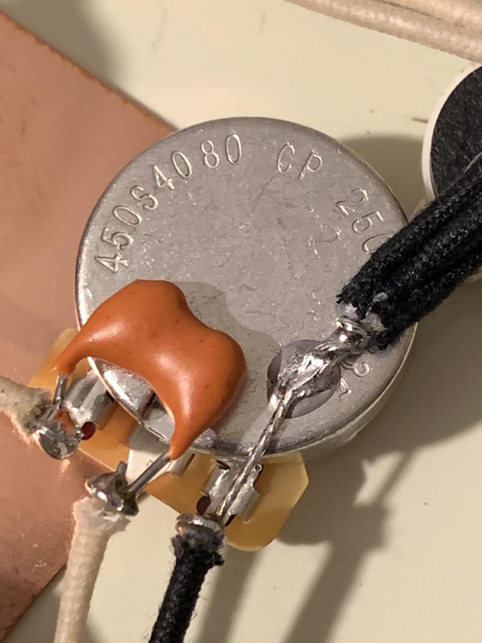 Let's start with version #1, the method that started it all: soldering the lug directly to the casing of the pot. This is the version Leo Fender used (remember: Leo didn't waste time on anything that wasn't necessary), but Gibson and all others used it as well. I like to call it the "cowboy version," or, for you Trekkies: This is the version James T. Kirk would have chosen when he would be into guitar-circuit soldering.