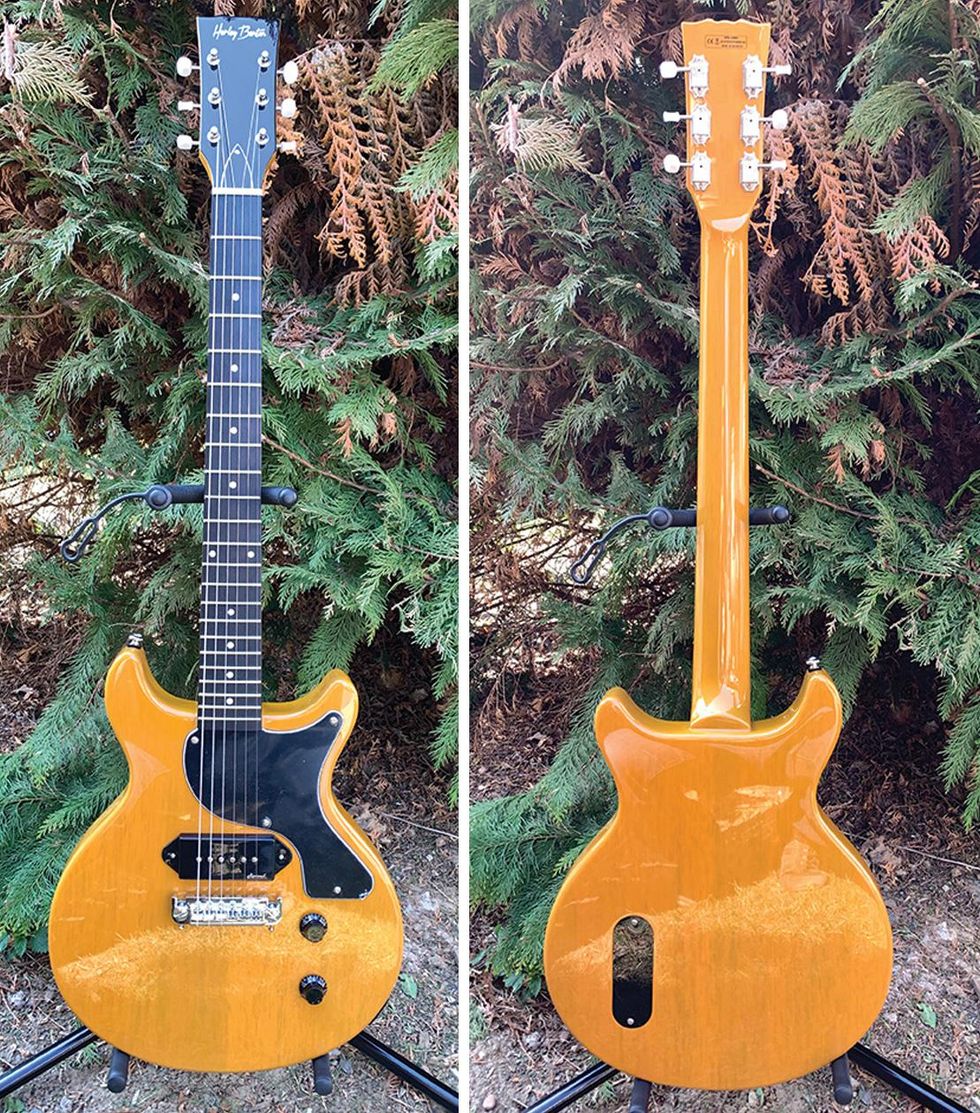 I decided on a Les Paul Junior Double Cut copy, a guitar design that Gibson released in 1958 and that's still in production today. It's a basic design: a single P-90 pickup placed above the wraparound bridge, with a Telecaster-like master volume/master tone configuration. This model is called DC-Junior TV Yellow and is made by Harley Benton, which is the home brand of the German-based Thomann company, one of the biggest guitar retailers in Europe.