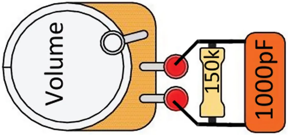 - A treble-bleed network with a 1000 pF cap and a 150k resistor in parallel. To learn more about this, check out "Deep Diving into Treble-Bleed Networks" from March 2019.