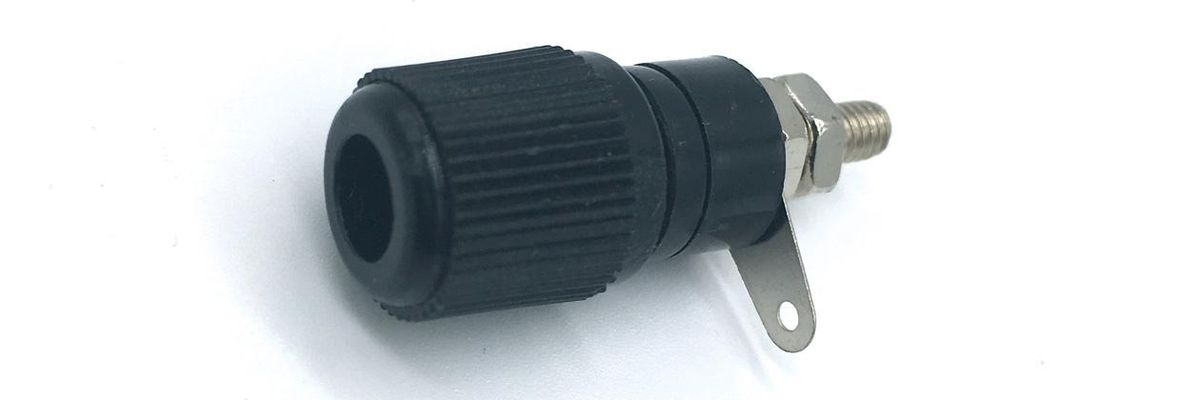 Banana posts. These are the jacks that the detachable test lead cables with alligator clip ends will plug into when the tester pedal is finished. They are also sometimes referred to as "binding posts" or "terminal binding posts," and you'll need four of these, too.