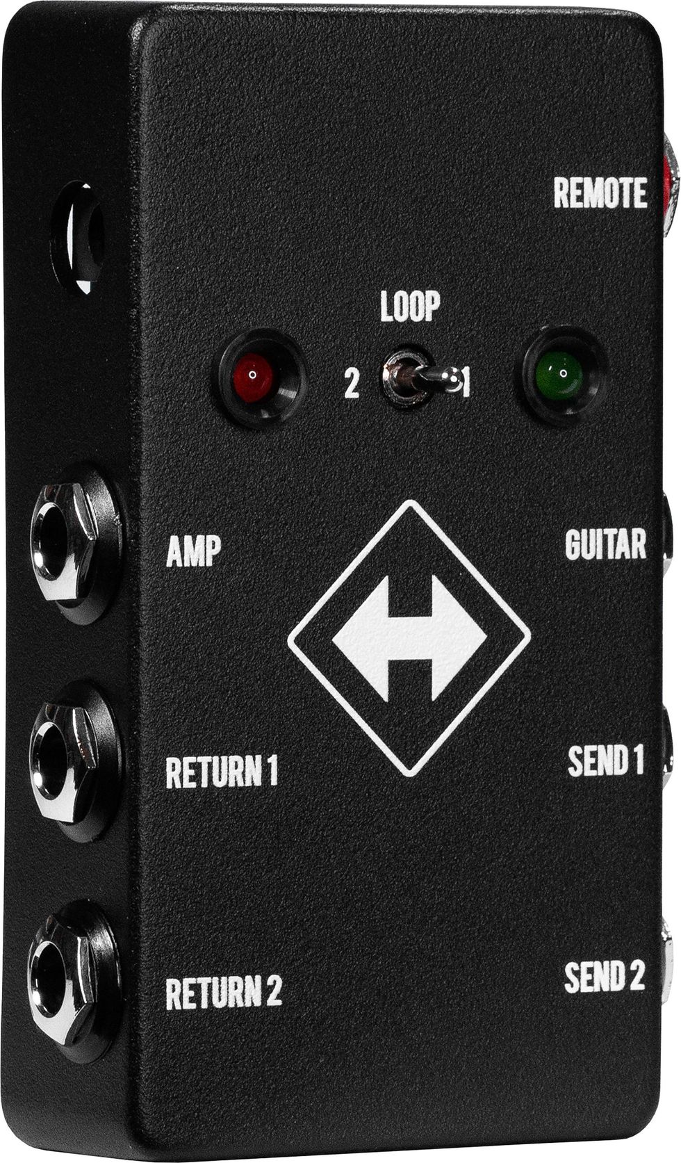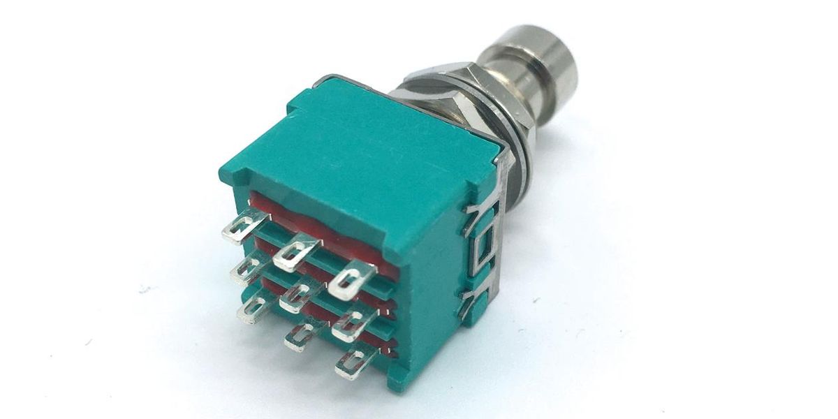 A latching 3PDT (triple-pole, double-throw) switch. It can be either a footswitch or a toggle.