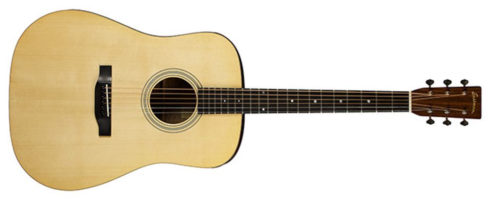 List price: $1,000The ‘Traditional E Series’ brings the best of the “Golden Era” of acoustics to the modern age utilizing the same time-honored methods and materials used during the 30′s and 40′s. The E6D Dreadnought Acoustic has an extremely dynamic response, from soft picking to hard strumming, a full-bodied tone and room-filling sound. The guitar features a solid Sitka spruce top and mahogany back and sides matched with hand-carved scalloped x-bracing. The body is fitted with herringbone binding, a mahogany neck, rosewood fingerboard with pearl dot inlays, and rosewood bridge. The E6D features chrome vintage open-gear Gotoh tuners, bone nut and saddle. D’Addario strings and hardshell case included.