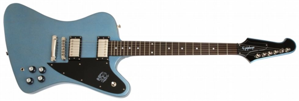 The Ltd. Ed. Firebird Studio puts the rare TV Pelham Blue color finish on one of the most iconic rock guitars ever made. The no-frills Ltd. Ed. Firebird Studio features a mahogany body and neck with the classic Firebird reverse headstock profile and 6-on-a-side Steinberger 40:1 ratio direct-drive Gearless machine heads. The Firebird is powered by Epiphone’s own Alnico Classic Plus humbuckers.