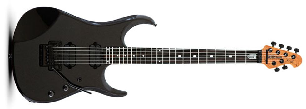 The Ernie Ball Music Man John Petrucci “JP16” offers an ideal combination of the best features of all John Petrucci signature instruments, one of the world’s best-selling artist signature models. The JP16 retains the styling of the current JP15 and features a basswood body with original JP6 arm scoop, black Floyd Rose Pro Series Tremolo with matching black hardware, two DiMarzio Illuminator humbucking pickups with a 20dB boost and a 25.5-inch scale, gun-oil finish, 17-inch radius roasted maple neck with ebony fingerboard, and Ernie Ball’s trademarked 4-over-2 headstock and compensated nut, designed for superior tuning stability.