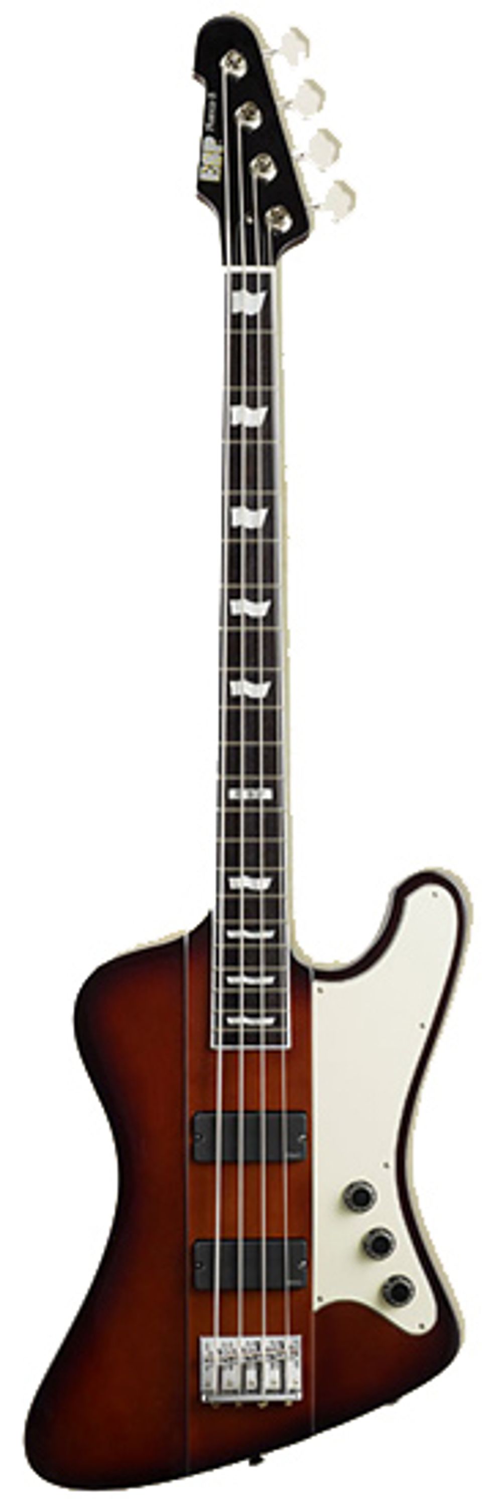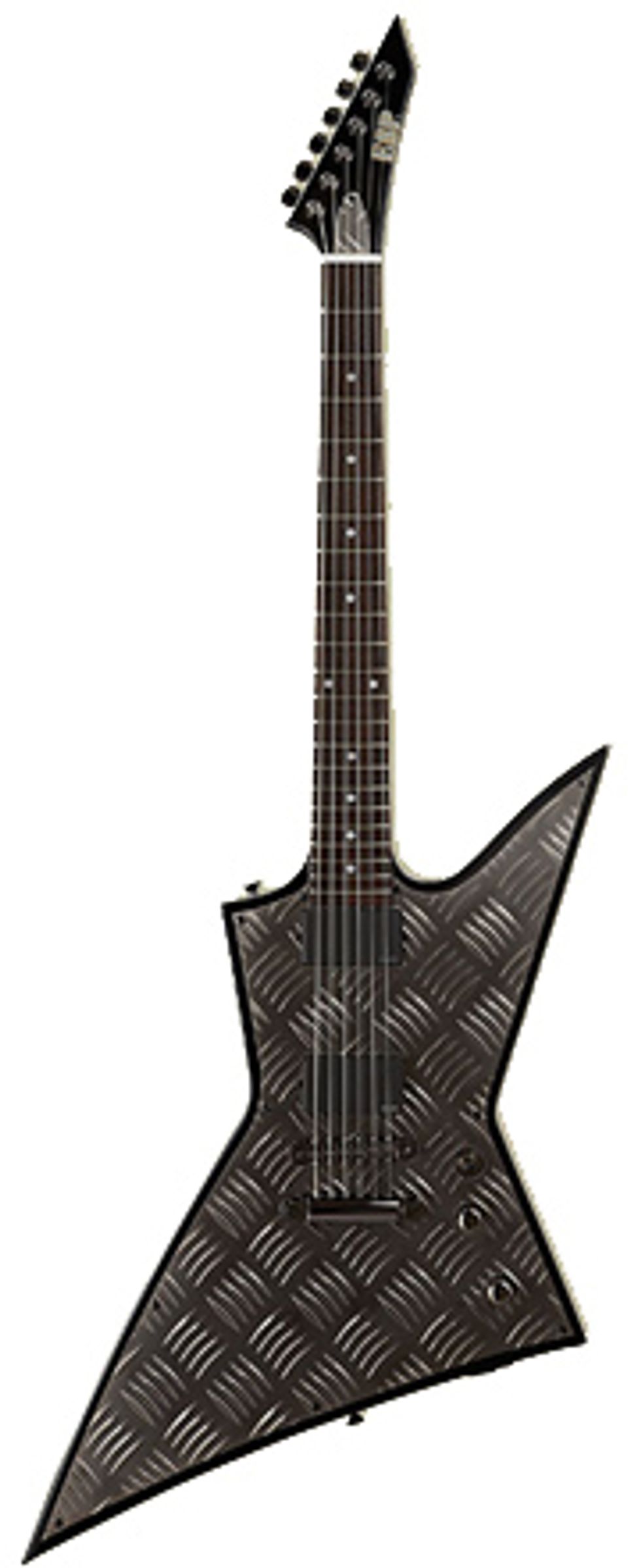 ESP is bringing the EX model back to their standard series with three iterations. The standard EX features mahogany body and EMG 81 and 60 pickups, and the EX Diamond Plate adds an anodized aluminum diamond-plate body shield. The third version, the FX, features a natural finish and three-per-side tuners.