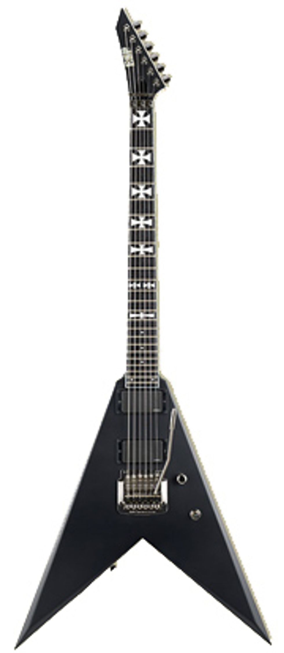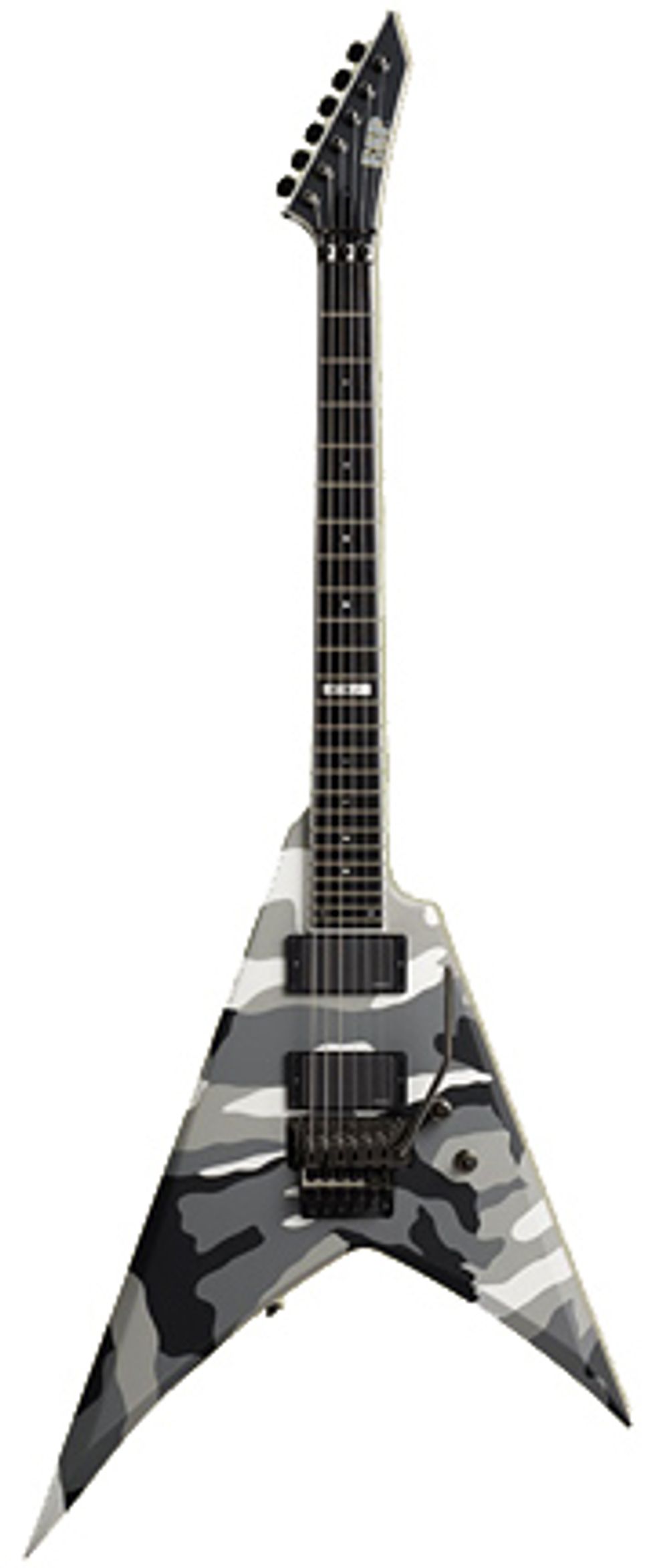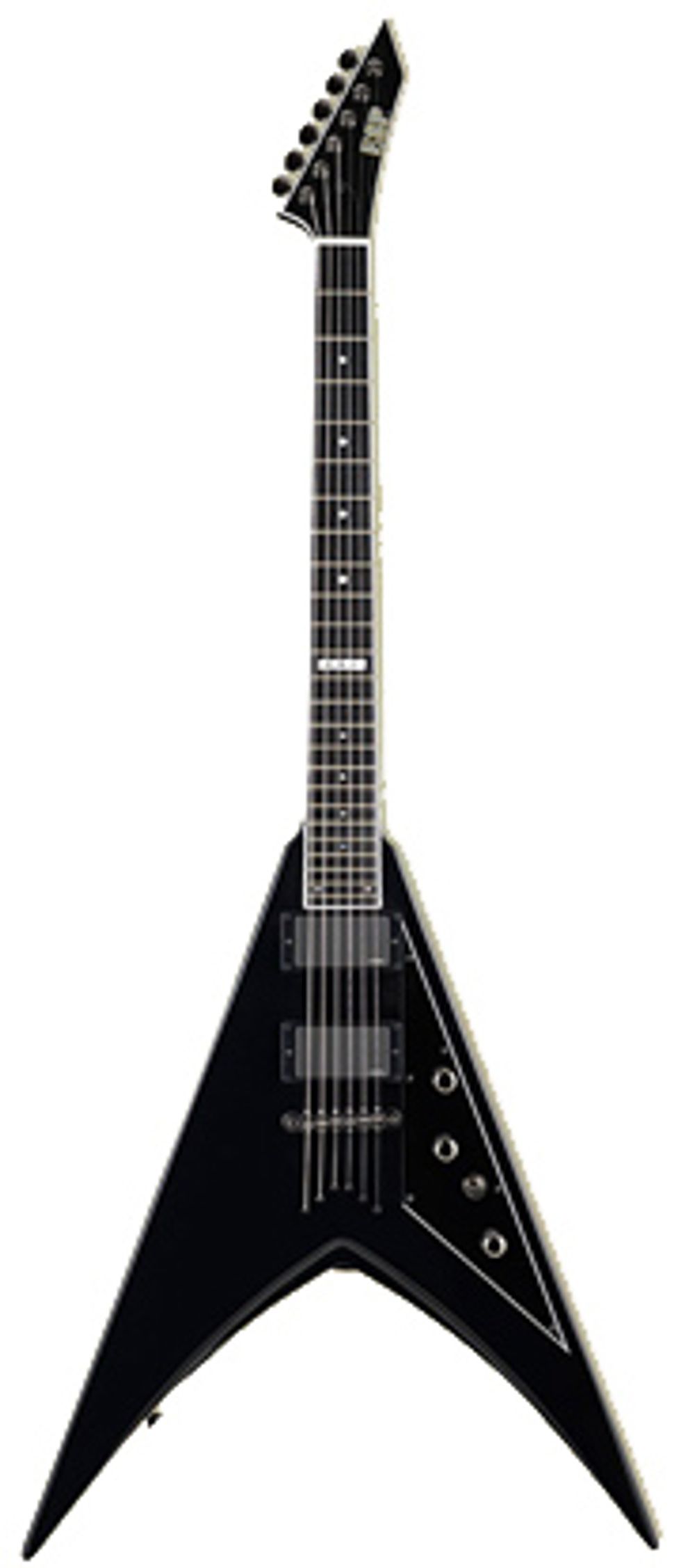 ESP is bringing their SV-II to the USA with lightweight alder body, EMG 81s, a Floyd Rose and camo finish. Also new in their V family is the NV-II, which is a sharp, symmetrical V with neck-thru-body construction and iron cross inlays; and finally the V-II is a hard-tail V featuring neck-thru-body construction, string-thru-body setup and a mahogany body with maple neck.