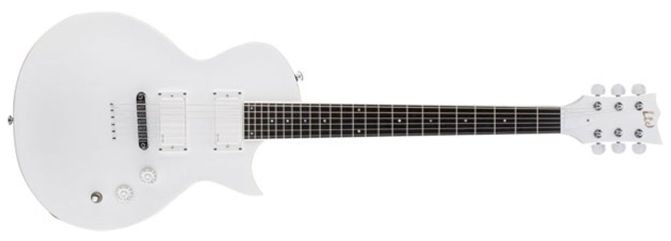 The newest member of the ESP artist family is the legendary Glenn Tipton of Judas Priest, and he has a Signature Series model being introduced for 2016. The LTD GT-600 is based on the ESP Viper shape, and includes 24 frets, two custom EMG Glenn Tipton 81 active pickups, a chrome pickguard and truss cover, and a Kahler tremolo. Other new Signature Series artists include Alan Ashby (Of Mice & Men), who has customized a TE Series guitar for the LTD AA-600. Mille Petrozza (Kreator) has put together a daring V-shaped model with Fishman Fluence pickups, a Floyd Rose, and glow-in-the-dark side dots with the E-II MK-1 and the LTD MK-600. Marco Mendoza (Dead Daisies) joins ESP’s lineup of Signature Series bass artists with the LTD MM-4 FM, styled on the ESP Vintage-4 and including EMG X-Series pickups and a Hipshot drop tuner. Another longtime ESP player, Ted Aguilar (Death Angel), designed the LTD TED-600 which is based on the Eclipse shape and stands out with a Snow White finish and white components/hardware.