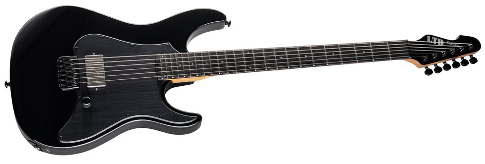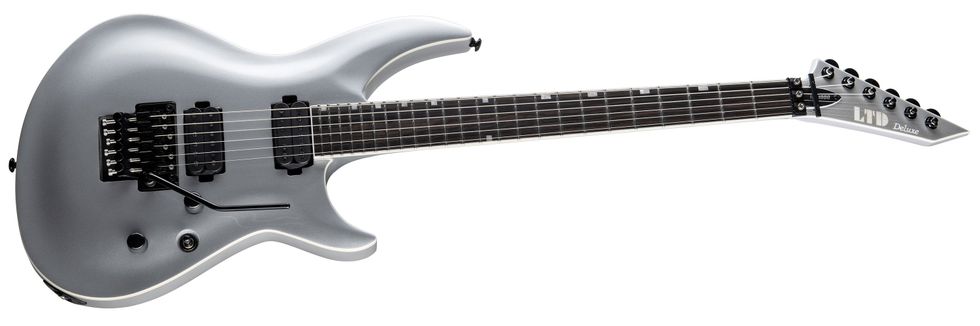 The LTD Deluxe H3-1000FR (Metallic Silver) offers set-thru construction at 25.5” scale, an extra-thinmaple neck, Macassar ebony fingerboard with 24 extra-jumbo stainless steel frets, a Floyd Rose 1000 SEdouble-locking tremolo with stainless steel screws, and a direct-mounted pickup set that includes theexclusive Seymour Duncan Custom 14 paired with a cosmetically-matching Seymour Duncan APH-1Alnico II Pro humbucker in the neck position. The new M-1001 (Charcoal Metallic Satin) provides a flat-top alder body and satin-backed, extra-thin u-shaped three-piece maple neck. Built with bolt-onconstruction at 25.5” scale, the M-1001 includes a Macassar ebony fingerboard, 24 extra-jumbo stainlesssteel frets, a Floyd Rose 1000 tremolo, and a direct-mount Fishman Fluence Modern Humbucker multi-voice active pickup.