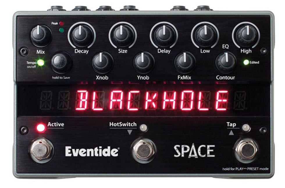 Anaheim, CA (January 16, 2011) — Eventide announced the newest addition to its stompbox product line: Space. Space features 12 of Eventide’s signature reverb combination effects taken from the H8000FW and Eclipse V4 along with some startling new magic. These unique effects, previously available only in Eventide rack processors, are now available in a compact, roadworthy package. Never before has there been a more dazzling collection of reverb algorithms combined with delays, pitch shifting, tremolo, modulation, and spatial effects in such a compact and affordable package. Space will be available in February at an Eventide stompbox dealer near you.