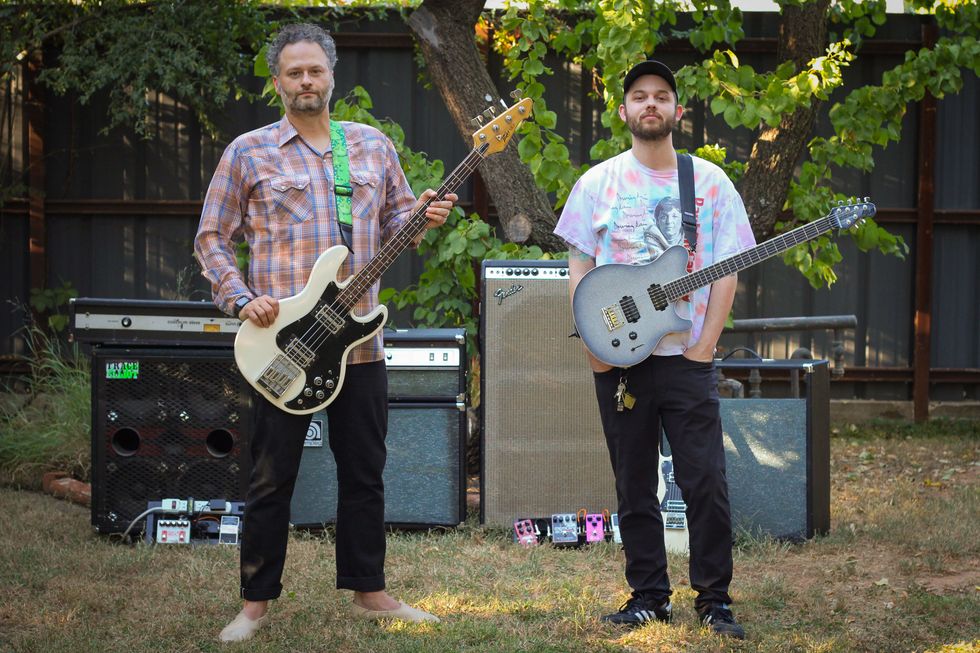 Stin (left) and Manhole (right) keep things simple with their gear collections: They like clean, natural tones that they can tweak and distort for just the right sounds.