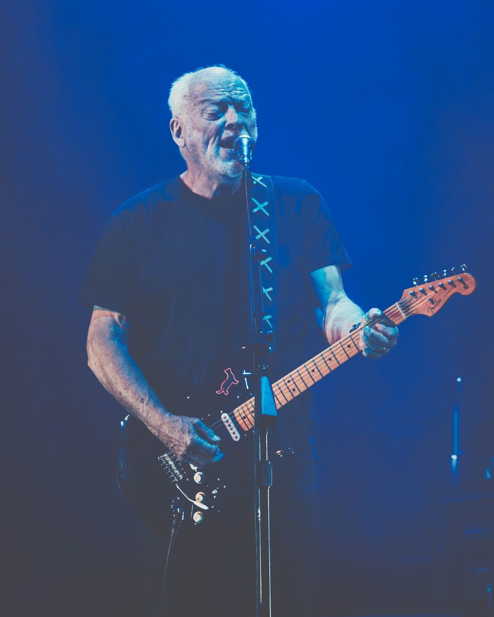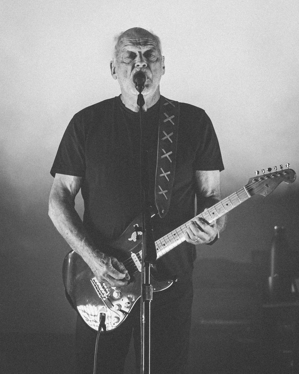 Gilmour wields his Black Cat Strat, which he also played on Luck and Strange’s opener, “Black Cat,” in the studio.