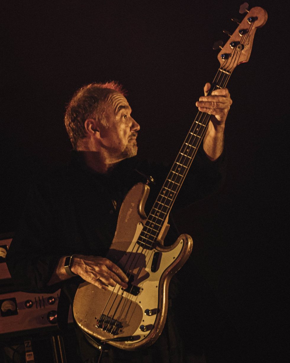 Guy Pratt, David Gilmour, and Ben Worsley keeping the rock in arena rock. In addition to his Fender Jazz Bass, Pratt also played an Ernie Ball Music Man Stingray, and an upright. For electric guitar, Worsley slung a PRS S2 SSH.