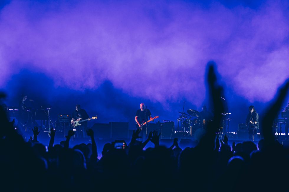 A crowd’s-eye view, with lighting-enhanced stage fog. At right, just out of frame, is famed keyboardist Greg Phillinganes, who first joined Gilmour’s ensemble as part of the Rattle That Lock tour of Europe and appears in the Live in Pompeii concert film.