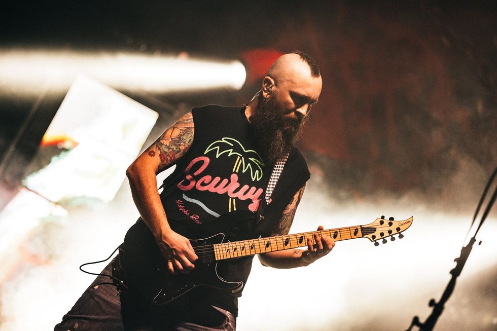 Joel Stroetzel, here, and Adam Dutkiewicz both play signature-model Caparison guitars. Stroetzel’s is a Dellinger-JSM V2.