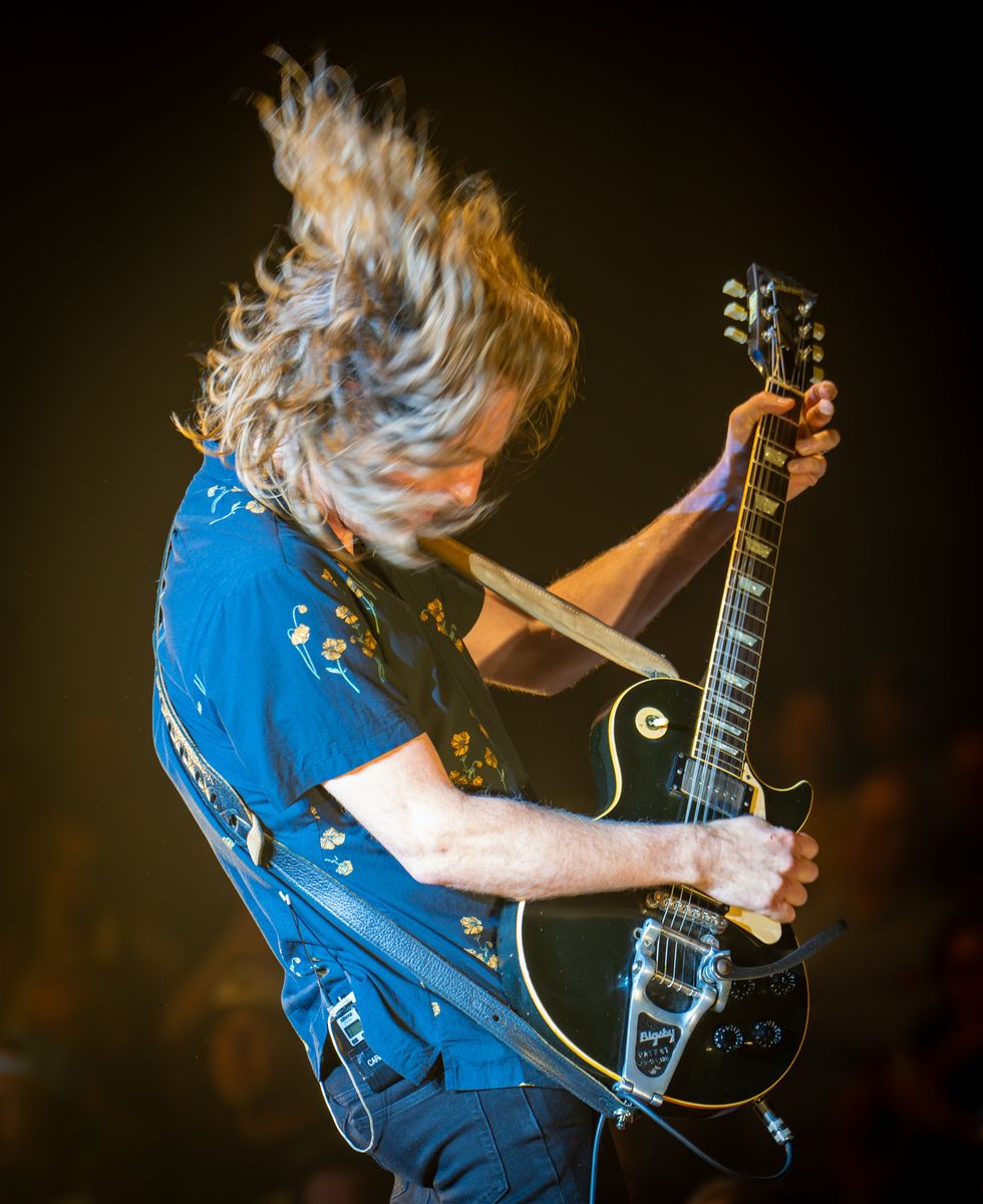Carl Broemel’s favorite 6-string is his 1988 Bigsby-equipped Les Paul Standard, which he puts to the test here during a Savannah, Georgia, concert.