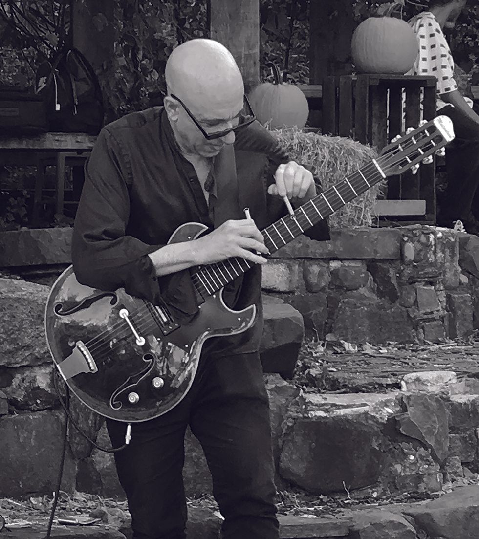 I am writing this piece for a guitar magazine, so, necessarily, I must serve up info that is guitar-centric. And I can do that, at least a little bit. But Elliott is also a noted composer, runs his own little record label, plays woodwinds proficiently, is a guitar builder/tinkerer, author, gracious supporter of other musicians’ efforts, family man, and killer blues player—a blues scholar, in fact. So where do we, the public, conditioned to needing categories, pigeonholes, and easy assessment signals, put Elliott Sharp—an artist with a powerful work ethic and a long, illustrious career of making mind-bending sounds and conceptual works? How about putting him in the pantheon of the maverick and the multifaceted? Surely this pantheon exists somewhere! In mind, in heart. To those for whom such things resonate and inspire, I bring you Elliott Sharp.
