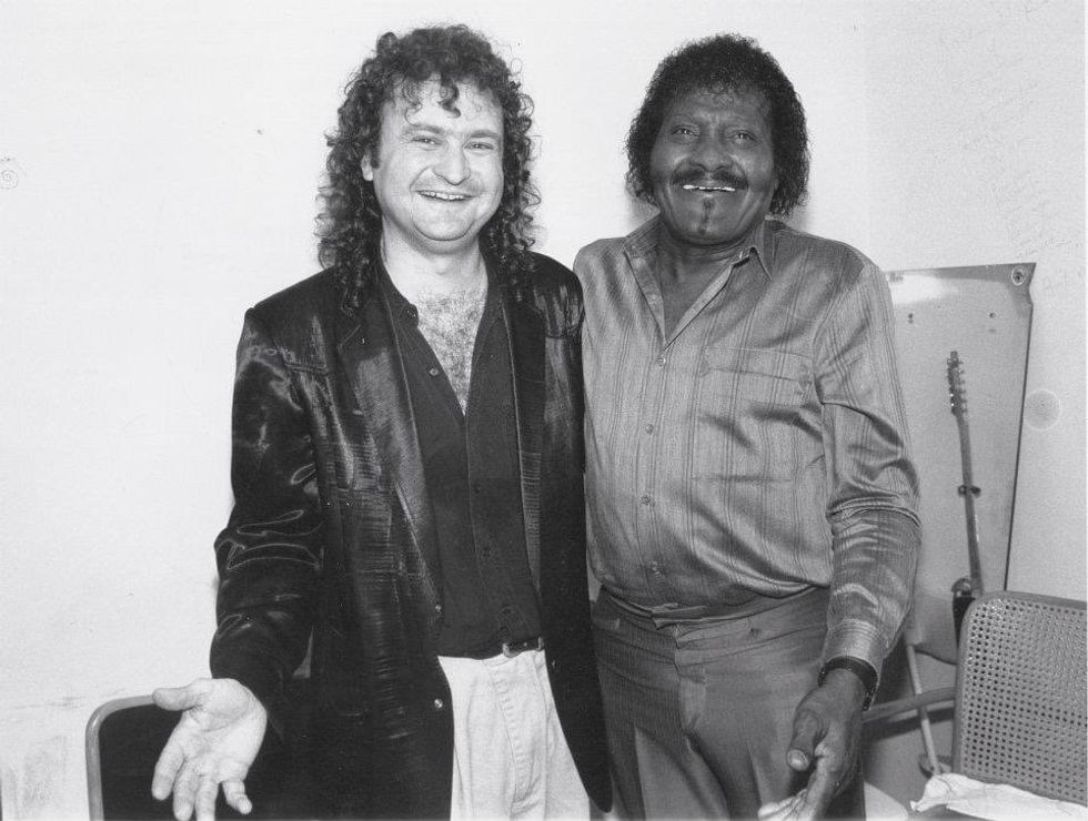 Ellis has performed with and observed a coterie of his blues influences since the late 1960s. Here, he poses backstage with the high-octane “Master of the Telecaster,” Albert Collins, in 1980.