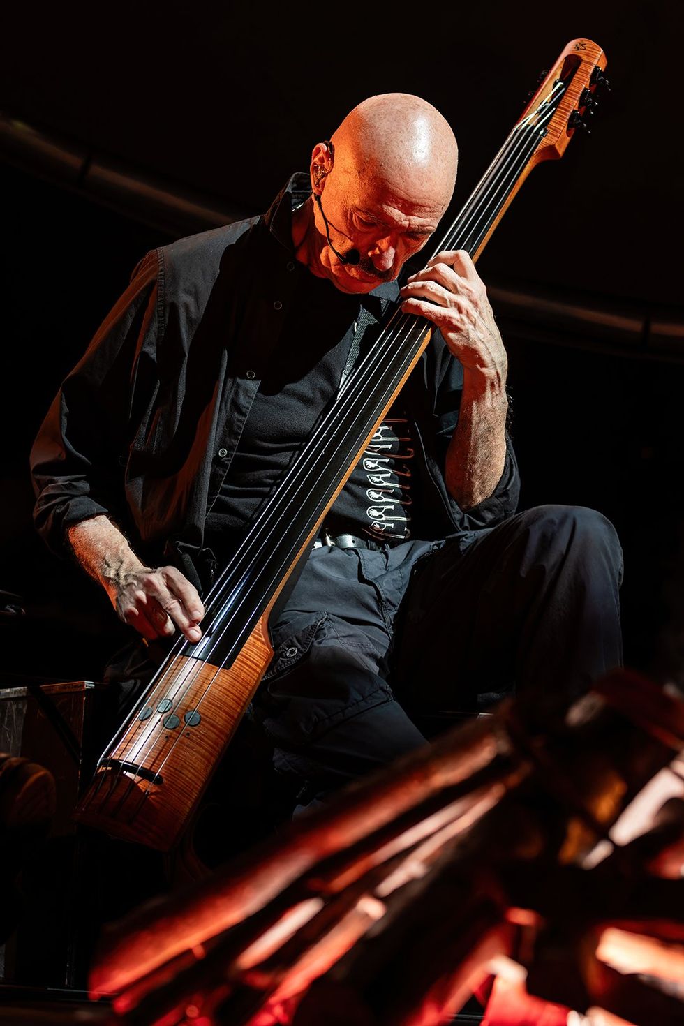 Levin’s days with Crimson, which, with a few breaks, extended to the group’s final tour in 2022, along with his tenure with Gabriel are enough to qualify him as prog- or art-rock’s reigning bassist. But there’s more evidence of his right to that crown found in albums by Anderson Bruford Wakeman Howe, Yes, the Crimson spin-off ProjeKct One, Liquid Tension Experiment, Steven Wilson, his band Stick Men with Crimson drummer Pat Mastelotto and touch-guitar player Markus Reuter, and his solo recordings.