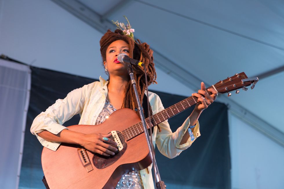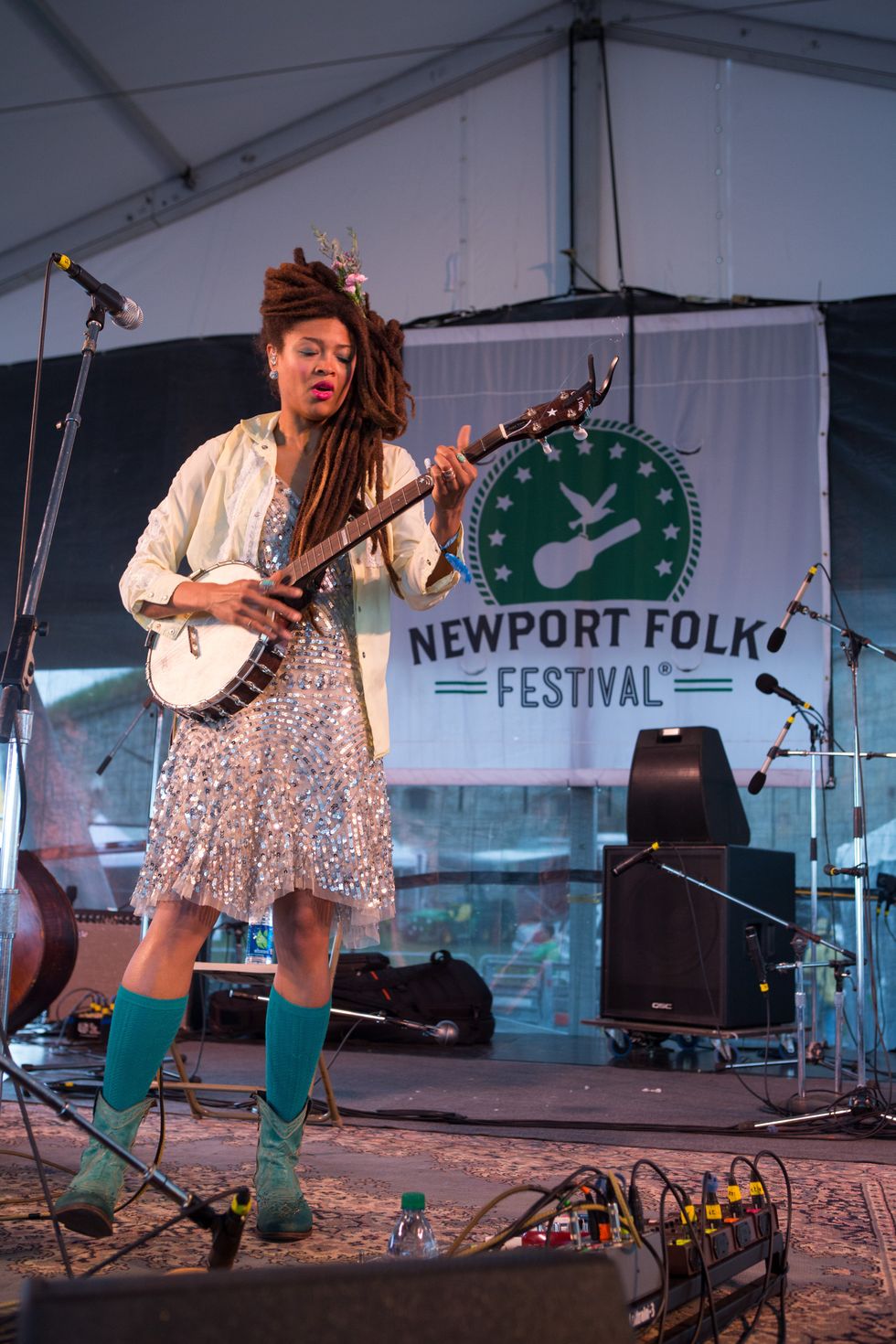 Valerie June at one of her several Newport Folk Festival appearances, with her trusty Gold Tone banjo