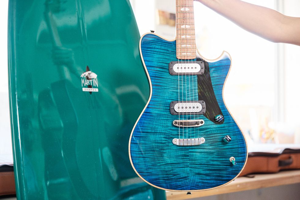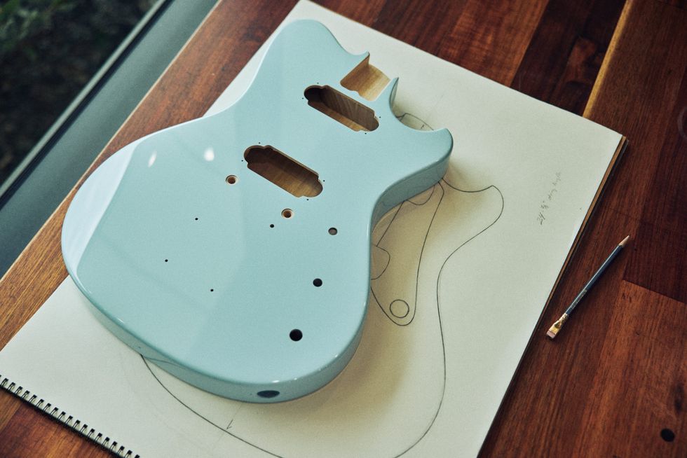 Over the course of Powers’ “long personal history” with the instrument, he’s built, played, restored, and repaired electric guitars. And, having grown up in Southern California, surrounded by custom-car culture, skateboarding, and surfing—all things he loves—he sees the instrument as part of his design DNA.