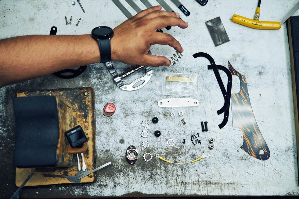 Those influences and the ideas about what to do with them kept collecting without a plan to take action. “At some point,” he says, “you need the catalyst to go, ‘Hey, you know what? I actually have the entire guitar’s worth of ideas sitting right in front of me, and they all go together. I would want to play that guitar if it existed. Now is a good time to build that guitar.’”