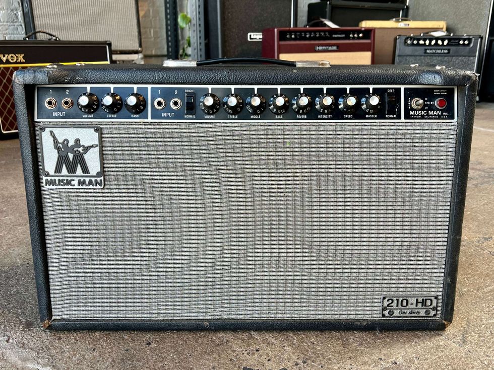 The HD-130 was the most extreme of Music Man’s offerings, delivering a sizzling 130 watts via four 6CA7 power tubes and available in both head and combo form. (If that sounds too extreme, you could get it shrunk down to a small 2x10 combo… but with no less wattage!) The master-volume control set features two channels each with a 3-band EQ and a bright switch, plus combo models and some heads included reverb and tremolo.
