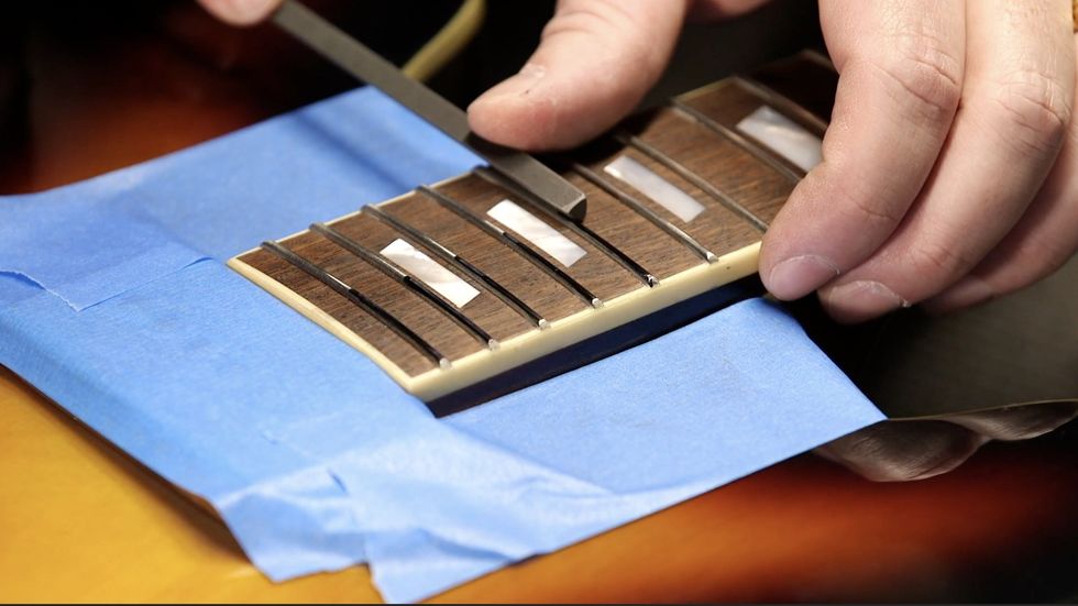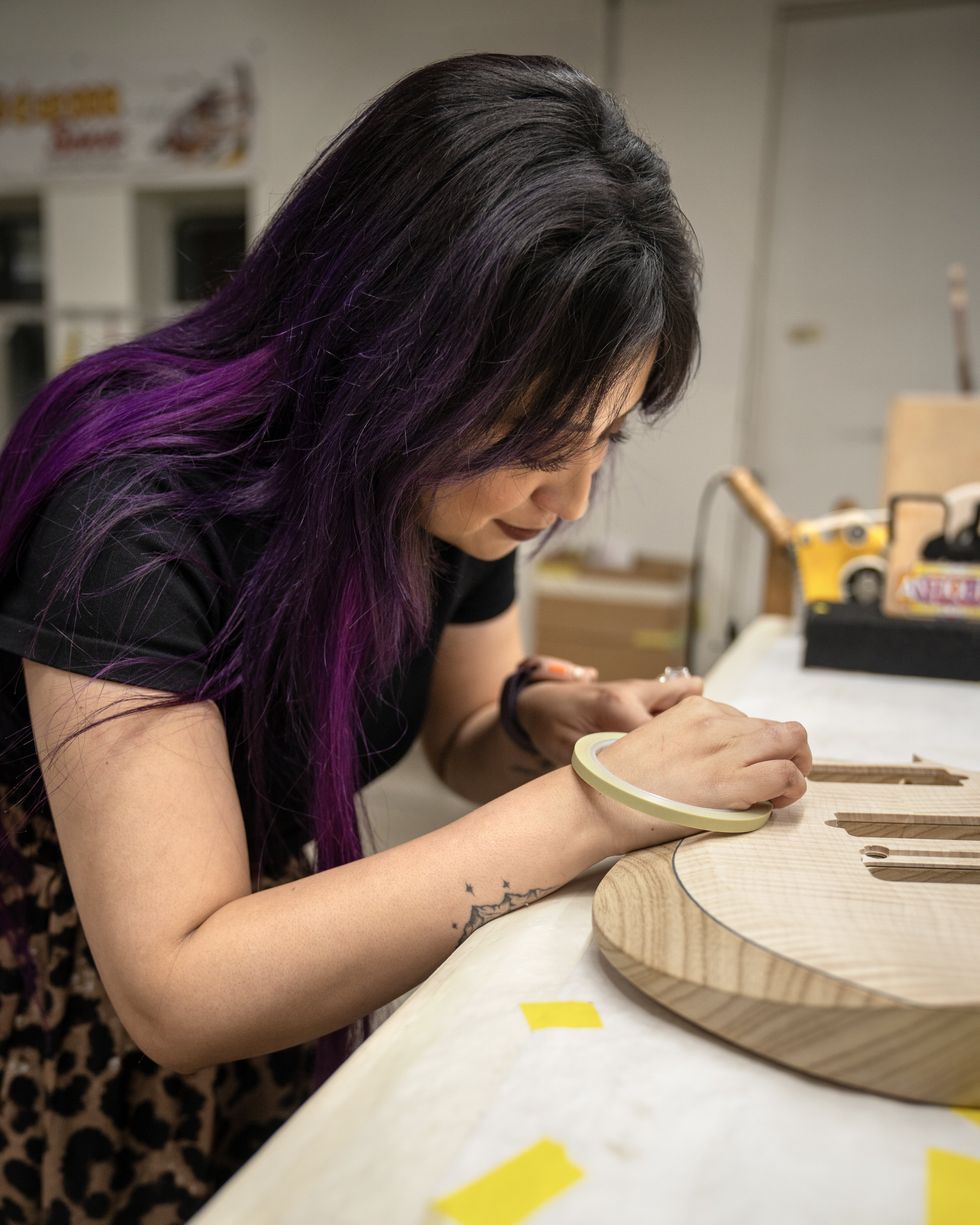 “We have a certain aesthetic sense,” says Carr, naming 1920s through ’60s design and art trends, chiefly art deco, as major influences. “I’ve always wanted to have that in the cabinets, because so many guitar amps are very basic-looking, and if somebody’s buying something that’s handmade with great care, it seems to me that you want to make it fun-looking, too. You want to take that same care with the whole aesthetic look of it and make it a real pleasure to have. That’s been a goal from the beginning, and it’s part of why we decided to take the extra expense. There are a lot of machines you’ve got to buy to create a cabinet shop. But now we have control over the beauty of the design.”