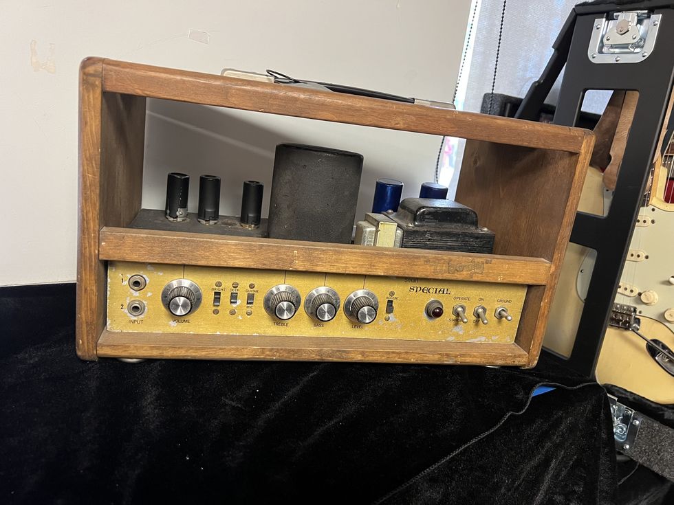 Building that Champ clone taught him how to navigate industrial parts suppliers, valuable know-how that would come in handy later on. At the end of the build, he flicked it on, and nothing happened. The amp wouldn’t sing. “I was super depressed,” Carr says. “I couldn’t believe it.” But he didn’t quit—he spent the next few weeks troubleshooting the circuit and got it to go. By then, in his mind, he was a bona fide amp repairman. Between Chapel Hill, Raleigh, Durham, and Greensboro, there were tons of young gigging bands who needed their amps in working order, so Carr got a breakneck crash course in amp repair over a few years. It wasn’t long before he thought: “Maybe I can make my own amp.”