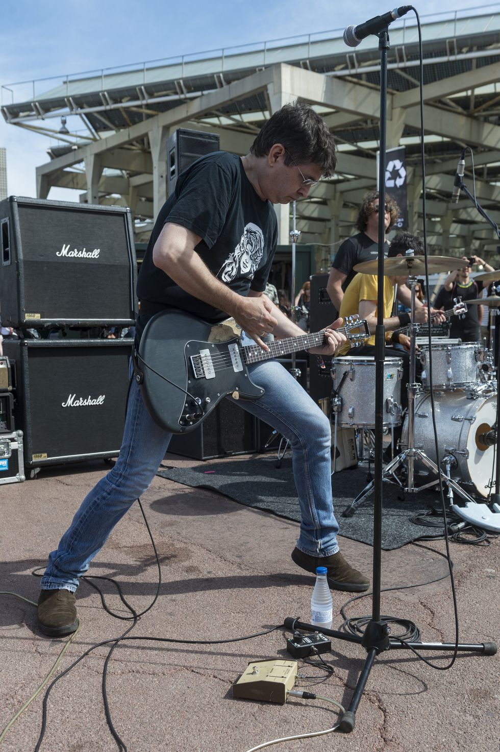 After having a conversation with the guitar player, understanding what their aesthetic is, I have them set up their gear and just play a bit, to get a feel what their playing style is like. Are they using a lot of feedback and sustain or are they hopping on a bunch of different pedals all the time? Is the sound derived from their playing style or from particular layering of pedals? Getting intimate with the exact specifics of the guitar style and sound and aesthetic guides you on what microphones to use and physically where to put them.