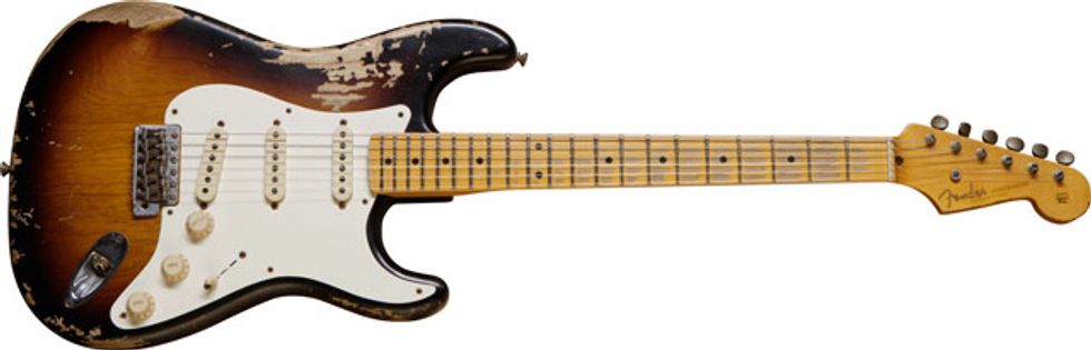 The 1956 Heavy Relic Stratocaster emits genuine worn out Fender Strat vibe, and is built for tone, playability, and classic looks. Available in Faded Two-Color Sunburst, Desert Sand, and Black, the 1956 Heavy Relic Stratocaster features a hand-selected ash body, one-piece maple neck with a 10/56 large V shape, maple fingerboard with 9.5ā radius and 6105 frets, custom shop Fat ā50s Strat pickups, five-way pickup switch with custom modern Strat wiring, two tone controls and a master volume knob, nickel hardware, case and certificate of authenticity.