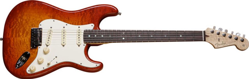 The 2012 Custom Deluxe Stratocaster and 2012 Custom Deluxe Telecaster are exactly that ā deluxe models with refined, custom features and the most exotic selection of wood for the highest-quality sound. Both feature a hand-selected lightweight ash body with access heel and AAA quilted maple veneer top, satin-finished AA flame maple neck with C shape and a 22-fret maple or rosewood fingerboard with 9.5ā radius and medium jumbo frets, chrome hardware with pearl button tuners, and a case and certificate for authenticity. The 2012 Custom Deluxe Stratocaster features āAbbyāsā pickups, hand-wound by the legendary Abigail Ybarra, five-way pickup switch, modern Strat wiring with and a Greasebucket tone circuit. The 2012 Custom Deluxe Telecaster features Twisted Tele pickups, custom Tele wiring, and a Greasebucket tone circuit. Both models are available in Faded Honey Burst, Candy Red, and Faded Cherry Sunburst.