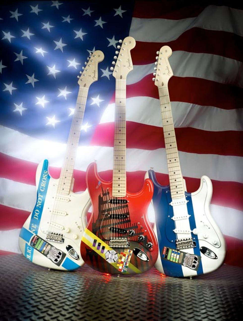 The trio of uniquely-adorned Stratocaster models honors each of the three major organizations that paid such a terrible price in rushing to the aid of those trapped at the World Trade Center complex that fateful day—the New York City Police Department, New York City Fire Department and Port Authority of New York and New Jersey. Each guitar has a custom graphic finish depicting imagery related to each agency and to the events of that day.
