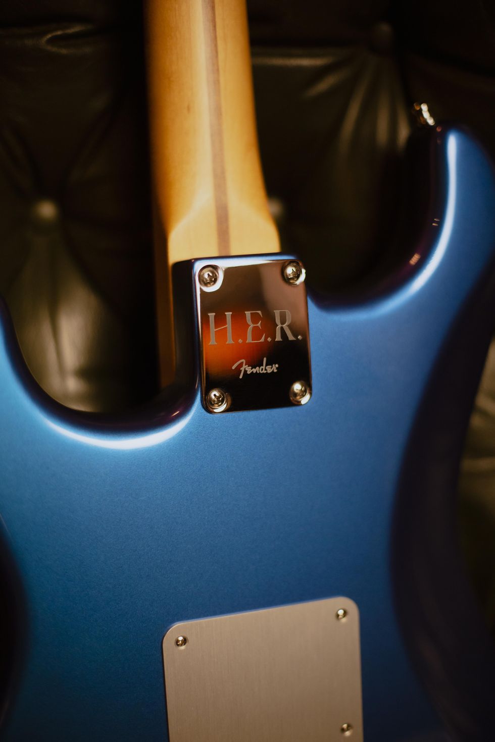The guitar features personalized cutting edge specs that five-time Grammy winner H.E.R. prefers in a Stratocaster with the body boasting the striking debut colorway that emulates the brilliant blue of a marlin, complete with an iridescent finish that shifts in the light. With only 300 units made world-wide, this guitar is a true, special limited edition.