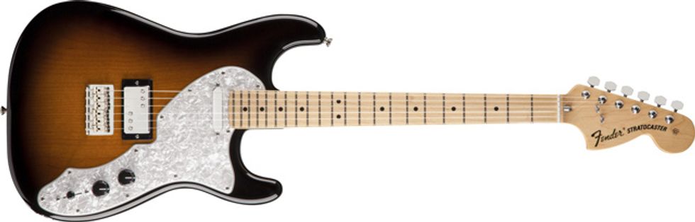 The Pawn Shop ’70s Strat Deluxe is one of the most unusual takes ever on the world’s most archetypal electric guitar, with a pronounced 1970s style and vibe. For tonal versatility, its alder body houses a Telecaster single-coil neck pickup and an Enforcer humbucking bridge pickup with a smaller Wide Range chrome cover. Other distinctive features include a "U"-shaped maple neck with 22 medium jumbo frets, 9.5" radius and "bullet" truss rod; four-ply white pearloid pickguard; three-way blade pickup switching and two Jazz Bass control knobs (master volume, master tone); ’70s-style hard-tail Stratocaster bridge and vintage-style "F" tuners. Available in 2-Color Sunburst, Black and Vintage White.