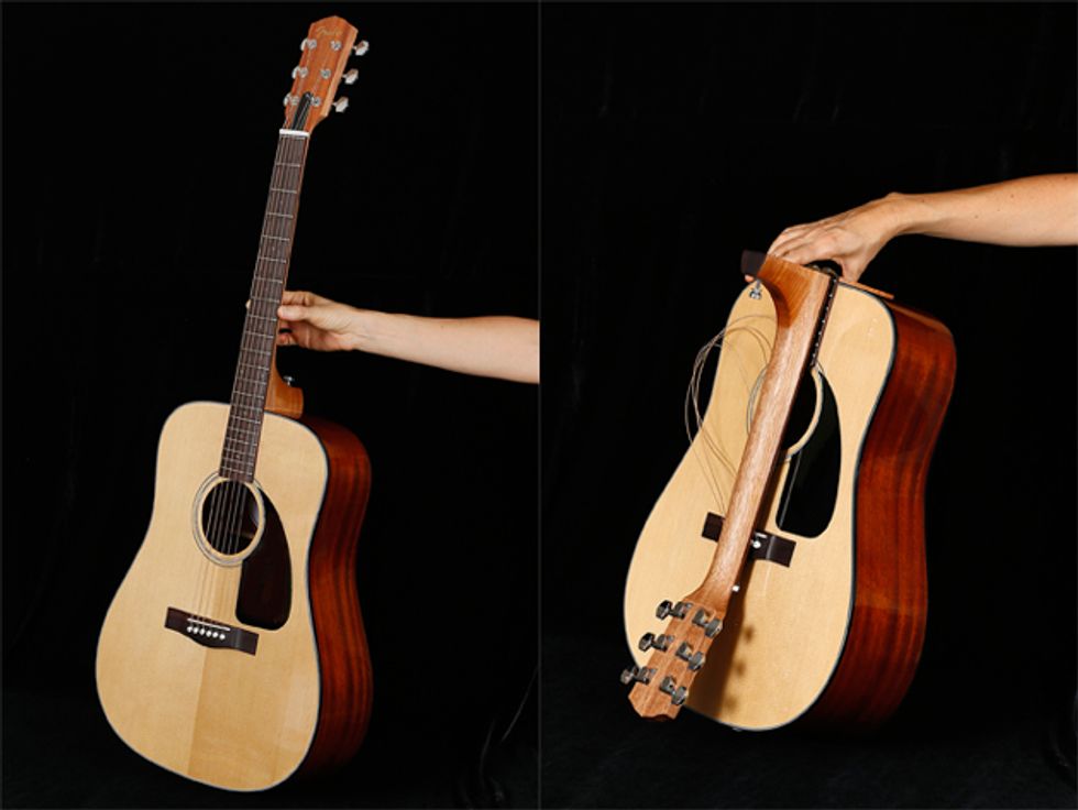 Scottsdale, AZ (October 23, 2013) -- Fender is proud to announce two guitars set to become a traveler’s dream, the CD-140S VA and the CD-60 VA. These guitars, which have been seen on ABC’s Shark Tank hit television show, will go anywhere thanks to their revolutionary Voyage-Air patented hinged neck design, allowing players to fold the guitar in half and store it in its specially designed gig bag for incredibly convenient transport.