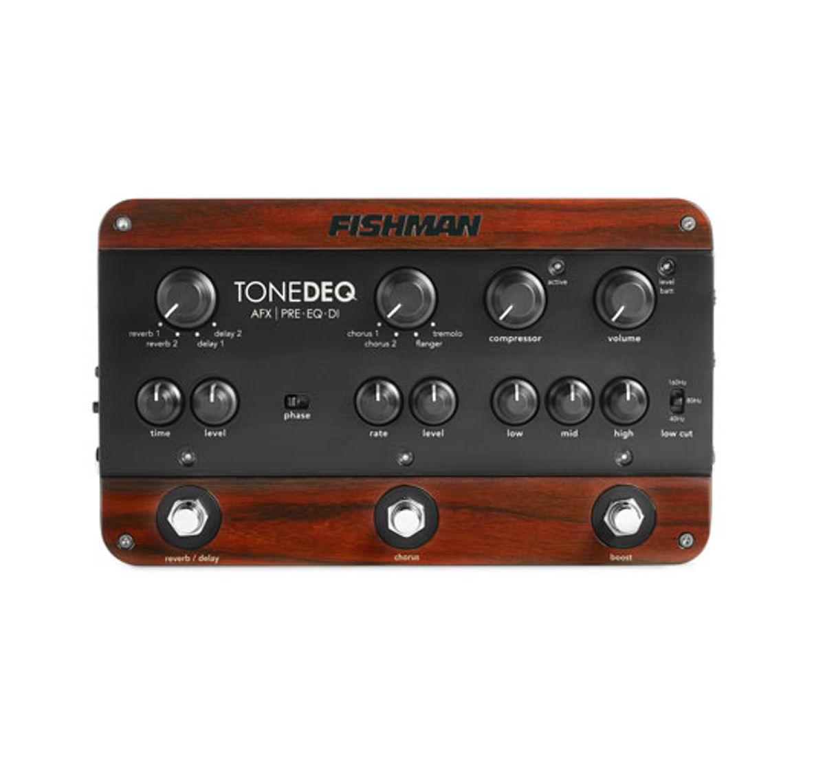 The complete performance solution for acoustic musicians, the ToneDEQ Acoustic Preamp with effects combines a high quality preamp, dual effects section, tone controls, a compressor, level booster and a balanced DI in one device.