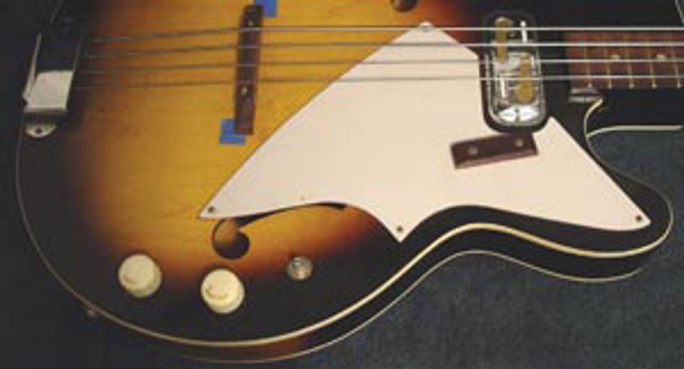 This 1962 US-made Harmony has a Blue Book value of $525 in 98 percent mint condition. The Blue Book is correct as far as the market goes, but as a bass to have in your arsenal of tones, I’m surprised that it hasn’t become far more valuable. Even Steve Winwood’s bassist used one of these in the mid-sixties. The Harmony H22 reissue has an MSRP of $999, and is now made in Asia.