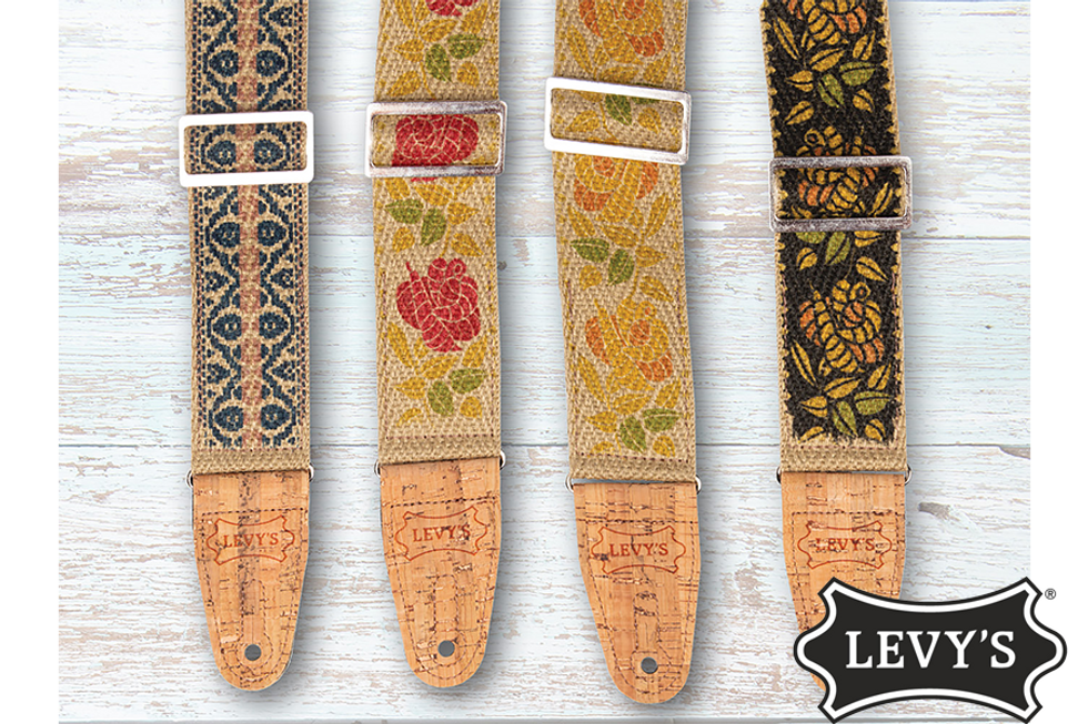 The New MH8P Series Vegan Hemp Series guitar straps by Levy's come in four new beautiful motifs and measure 2"/51mm in width. These organic straps are cruelty-free using sustainable materials and extend from 37"/940mm to 62"/1572mm via silver-colored tri-glide sliding adjustment. Natural hemp webbing and durable 2-ply cork ends safely support your instrument, along with pinhole stitching on both ends to prevent stretching. To address the issue of pick dropping encountered by almost every gigging guitarist, the MH8P Series comes equipped with a convenient 2.5"/64mm inside pocket to provide quick access to extra picks. Hand-crafted in Novia Scotia.