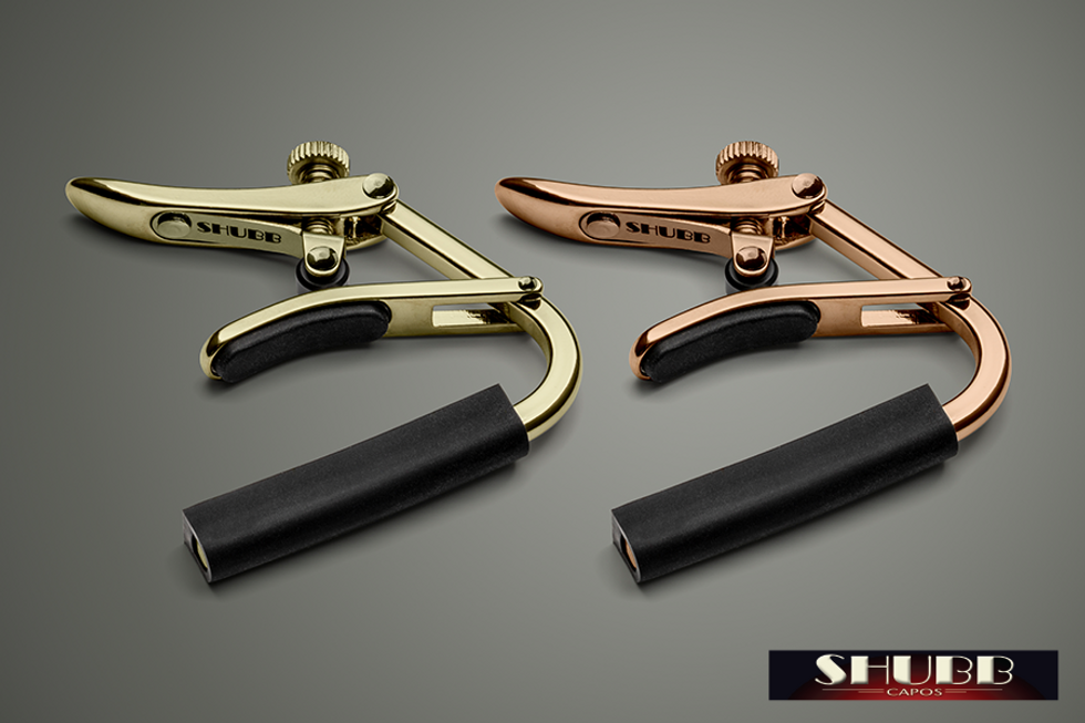 Adding to the company's line of premium capos, Shubb has introduced the new Capo Royale Series, featuring durable gold finishes that deliver long-lasting beauty.